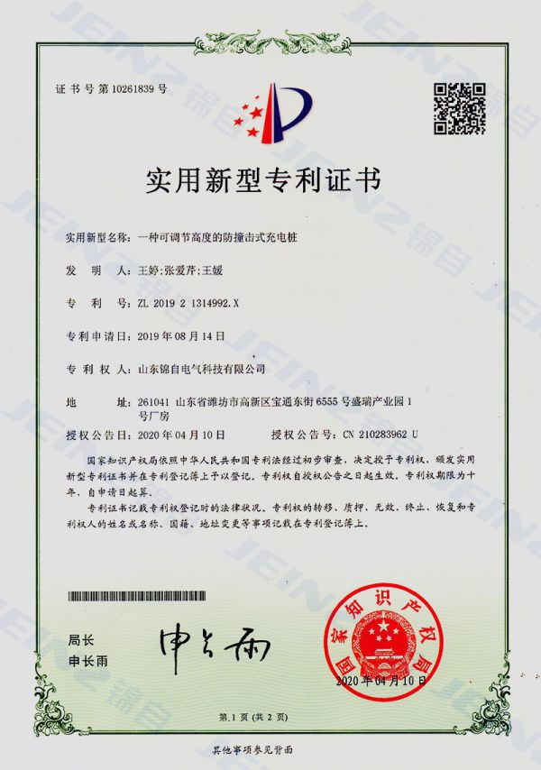 实用新型专利证书