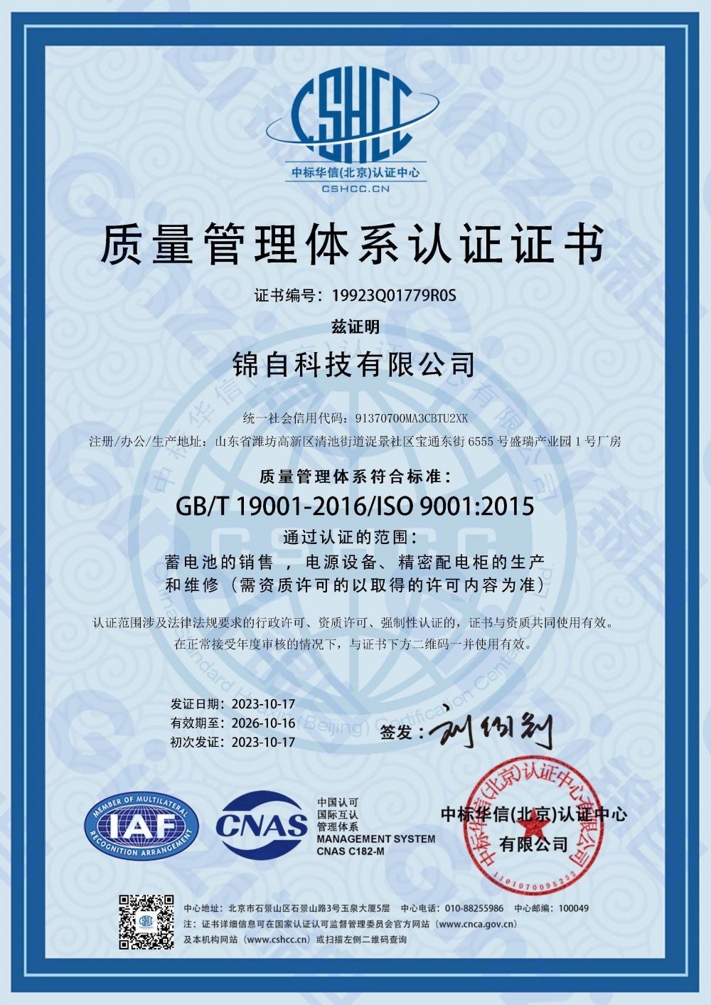 质量管理体系认证证书